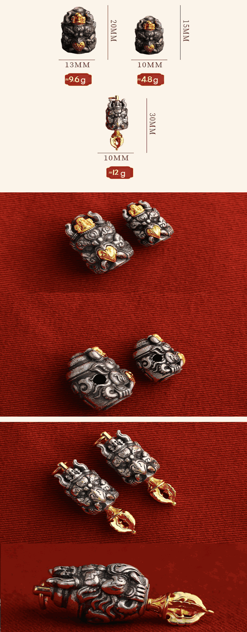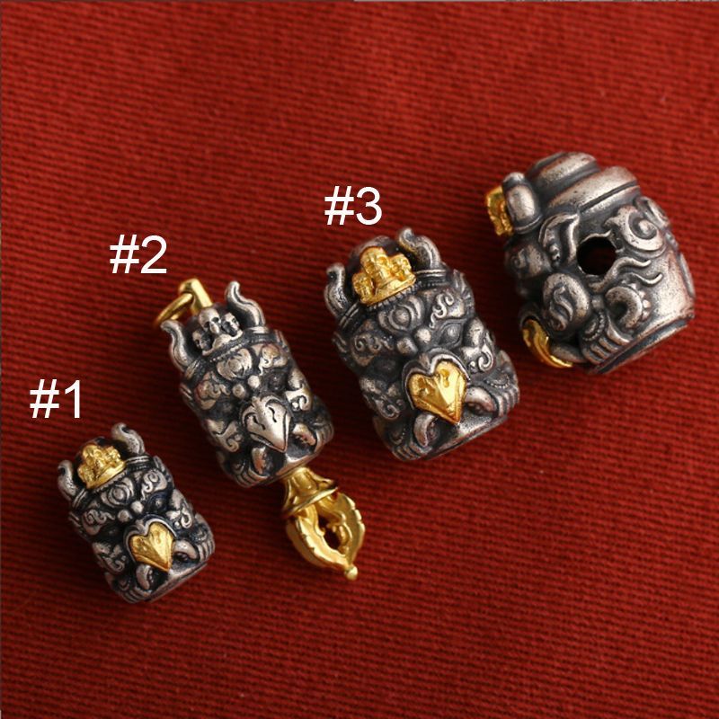 Handcrafted 100% 925 Silver Tibetan Garuda Guru Bead Buddhist Three-way Beads. These Garuda Guru beads are made from 925 silver, and 24k gold plated.